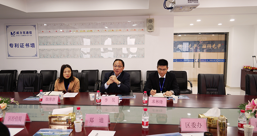 公司董事长李昊接待并陪同调研。座谈会上,李昊董事长向郑常委等领导详细汇报了必赢bwin通信的发展经营情况,介绍了公司在产品开发、技术创新、行业聚焦、市场开拓的进展,并且对公司未来5G通信产业的发展规划做了汇报。